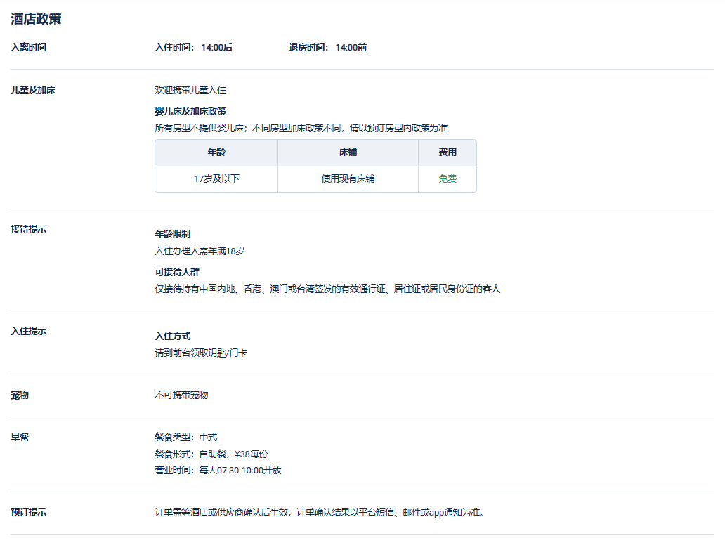 入离时间: 入住时间: 14:00后 退房时间: 12:00前