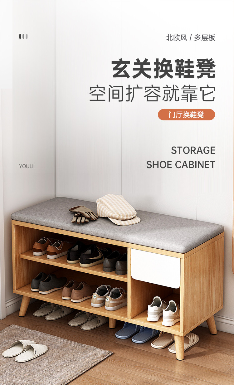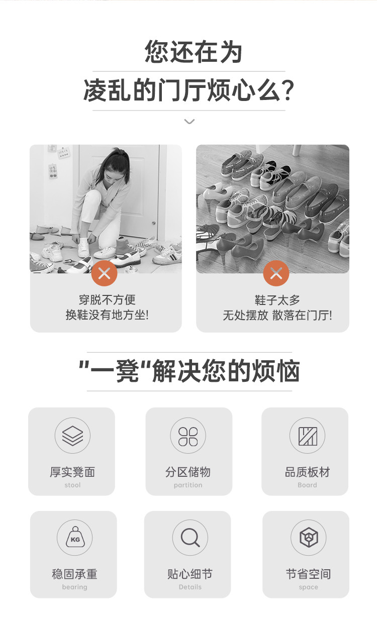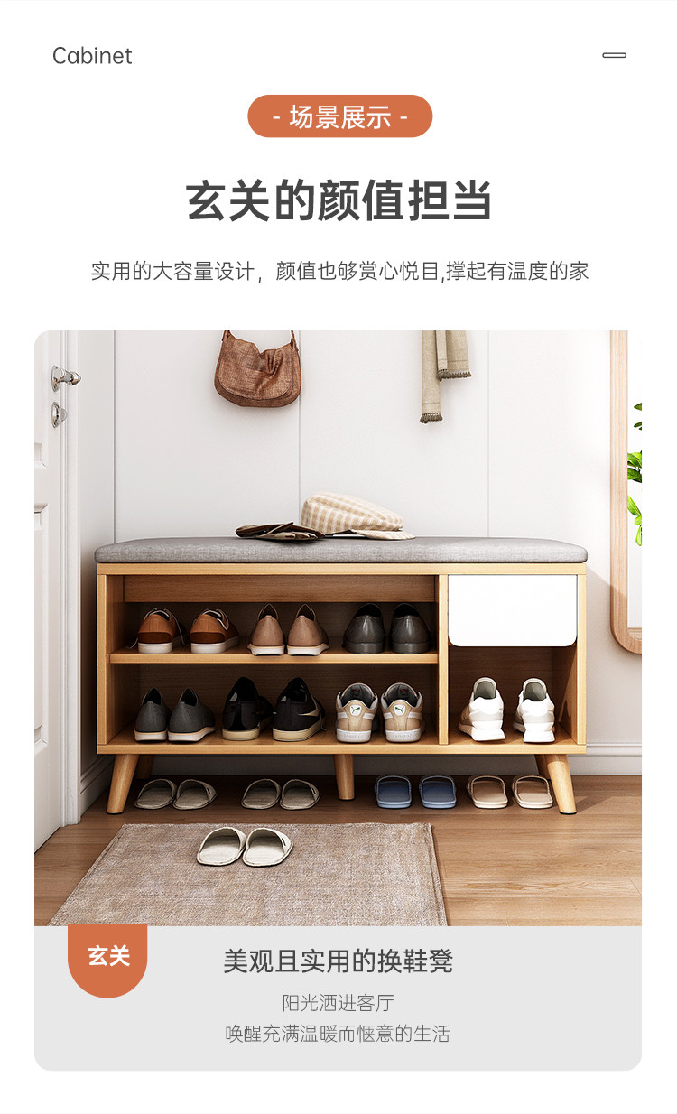 商品卖点: 稳固实木腿可坐换鞋凳