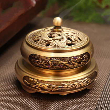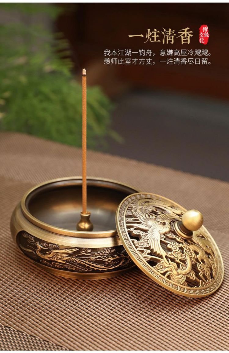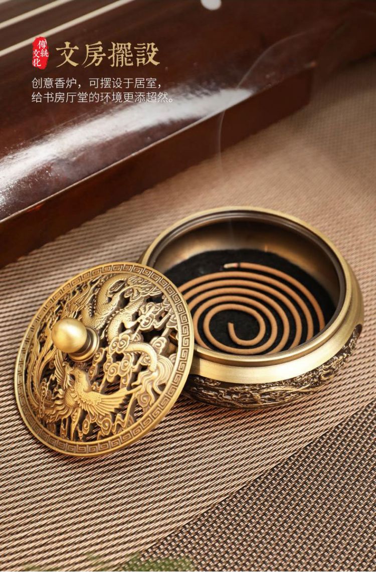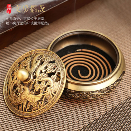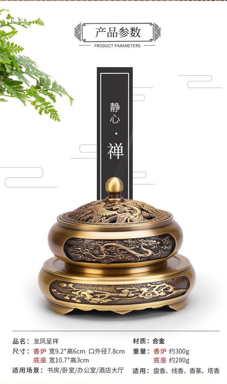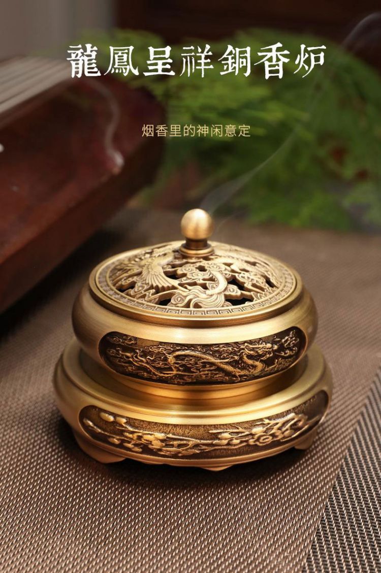 香炉铜龙凤呈祥檀香炉家用室内安神沉香熏香炉小号香薰炉盘香炉