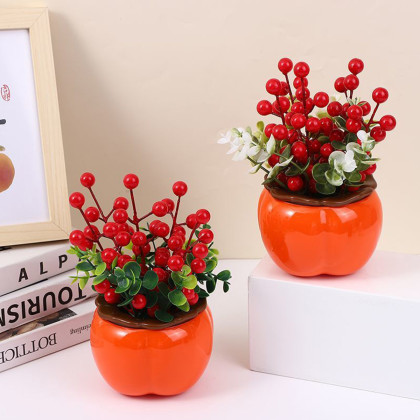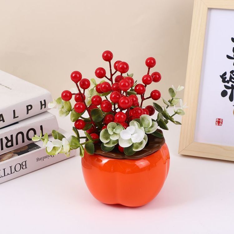 2024年龙年新年迎春过年喜庆仿真花装饰乔迁新居红果摆饰摆件