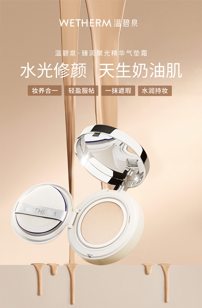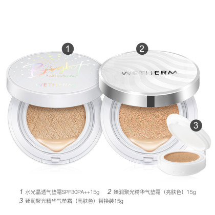 套装明细: 温碧泉臻润聚光精华气垫霜(亮肤色)【15g+15g(替换装)】+温碧泉水光晶透气垫霜SPF30PA++15g